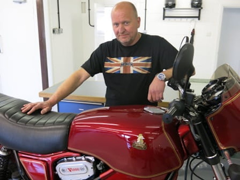 "So I went home and got on the internet and tried to find out where I could buy one. I found out that they were horribly expensive and then I saw an advert with Mick Broome, so I contacted him and said ‘have you got a bike for sale’, he said ‘yeah come and see me’ so I went to Northampton the next day. He told me about his ambitions which was simply to retire, close Hesketh down and call it a day. We reached an agreement so I bought a bike and I bought the company in the same day, as you do!
