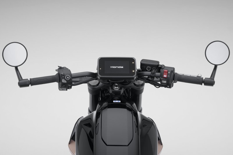 Without a fuel tank to consider, Honda has been able to keep the bike relatively narrow between the rider’s knees and provide a seat that extends forward, motocross-style, up the rear of the ‘tank’ area.