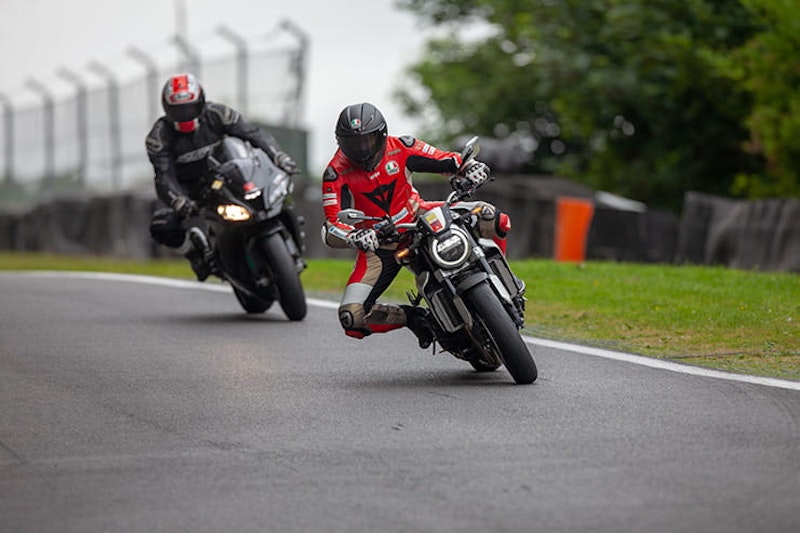 Having been invited to a Michelin-run track day at Cadwell Park I thought it only fair to switch to the Bibendum-marked rubber and because I’d had good memories of the Power RS launched in 2017 I opted for those instead of the Power Cup Evo. Fresh with a set of new boots (and a brand new set of Dainese #CustomWorks leathers) out I went in the fast group on my naked street machine surrounded by track day-ready BSB-wannabes freshly shorn of their tyre blankets. I’ll trundle around at the back taking it steady while the tyres bed in, I thought. Realistically, after about two laps they were up to temperature and feeling good. The Honda has a lively front end for track use and not masses of ground clearance but then every single person reading this will be shouting, “it’s not designed for track use”. And you’re right. But it did give me the chance to see how the performance matched up and to really stretch its legs.