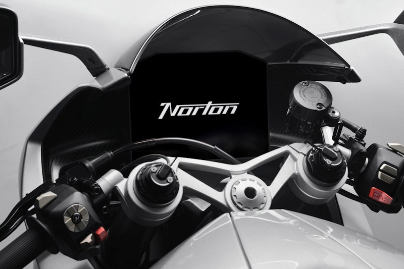 With so much power, it’s good to see Norton isn’t skimping on the rider assist technologies. There’s cornering traction control with a six-axis inertial measurement unit, for example, as well as wheelie control and slide control, launch control and hill-start assist. The six-speed transmission, powered via a wet, multiplate clutch, is equipped with a bidirectional quickshifter, and the electronic throttles mean the engine auto-blips on downshifts to match the engine revs to the road speed. Due to the engine’s focus on midrange torque, the final drive gearing is also longer than most comparable bikes at 2.41:1, and Norton promises an ‘Optimal Gear Shift Suggestion’ system to prompt riders when it’s the ideal time to change ratios.