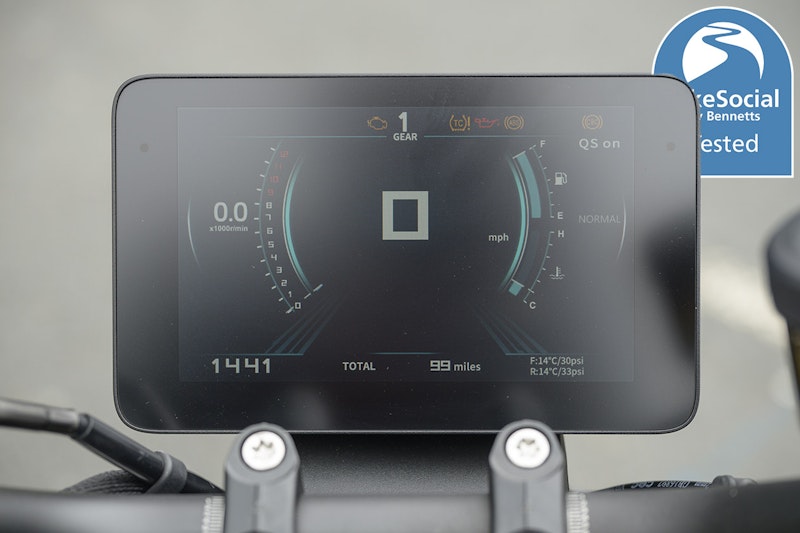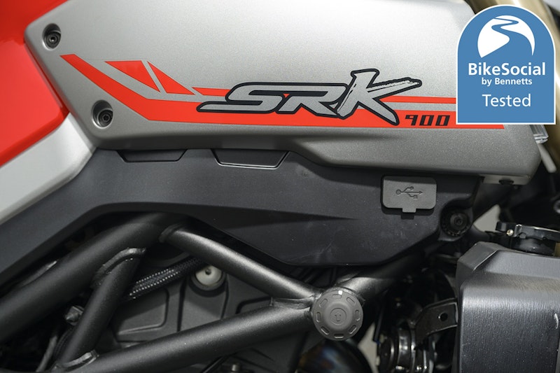 QJMotor are not cutting corners when it comes to spec, especially when you consider how keenly it's priced. There's that clear TFT display, which can be paired to a smartphone via Bluetooth for navigation, calls or music control. Tyre pressure and temperature monitoring are nice touches. I enjoyed watching the temperatures rise on the motorway or during fast riding and then drop again at low speeds or after a short stop. Why don’t more bikes have this as a standard fitment? Cruise control, a quick-shifter, LED lights all round, plus that USB port and removable TC are all onboard. The switchgear is a tad dated, but otherwise it’s hard to criticise the QJMoto SRK's spec. Impressive for under £7000.