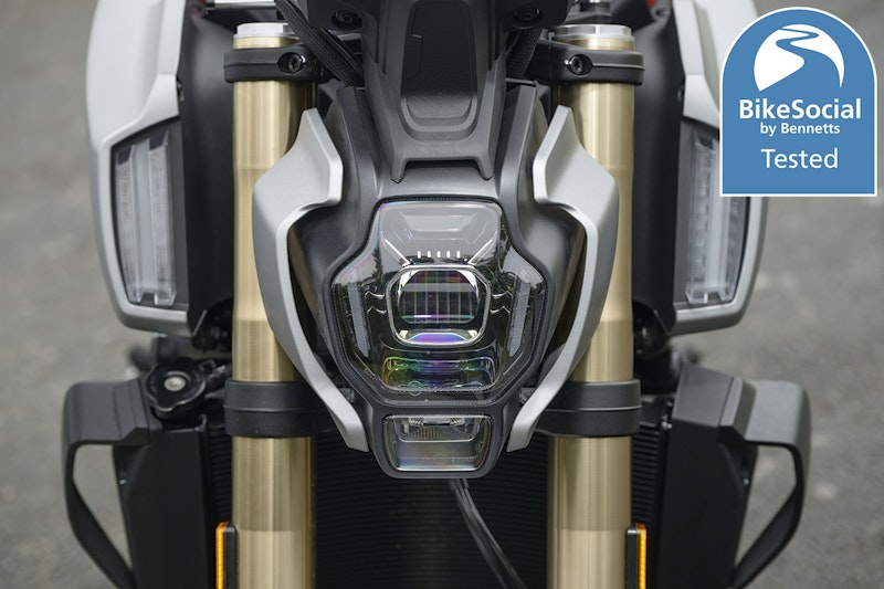 Fully adjustable Marzocchi suspension, Brembo brakes with Bosch ABS, Maxxis tyres, a colour dash with connectivity, multiple rider aids, switchable traction control, cruise control, and quick-shifter are all fitted as standard meaning it’s ticking a lot of boxes for the sub-£7k price tag.