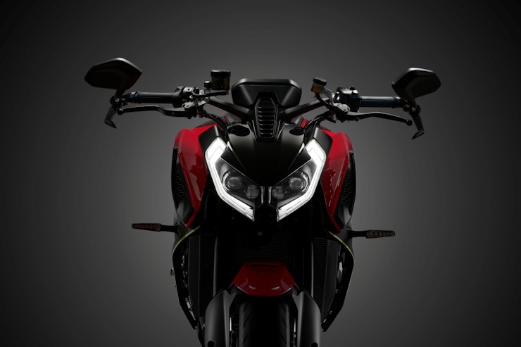 Back to the SRK921, the engine shares its 921cc capacity, 73mm bore and 55mm stroke with the short-lived MV Agusta Brutale 920, essentially making it a sleeved-down version of the old F4 1000’s motor (which had a 76mm bore and the same 55mm stroke.) It’s a four-valve-per-cylinder, DOHC design, and has been reworked to meet the latest Euro5+ emissions rules, with a peak power of 127.5hp at 10,000rpm and max torque of 68.6 lb-ft arriving at 8,000rpm – both figures that are nearly identical to the old Brutale 920’s outputs.