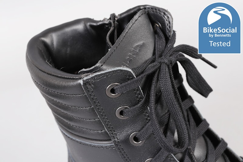 The Richa Jade boots have a full-grain, all-leather upper with laces and a side zip to fasten. There are small reflective inserts around the top of the ankle too. The boots are 16cm tall from the top of the boot to the sole making them more than an ankle boot as they cover most of my calf too.