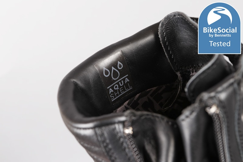 Richa’s Aquashell membrane is waterproof, windproof and breathable. Protection comes from a reinforced heel, plus toe and ankle cups.