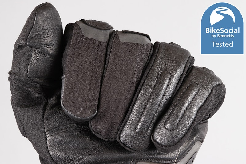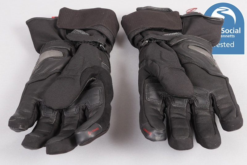 There’s no added protection on the outside edges of the little finger, but while lined winter gloves do tend to pull off a bit easier than summer gloves, the wrist restraint works well.