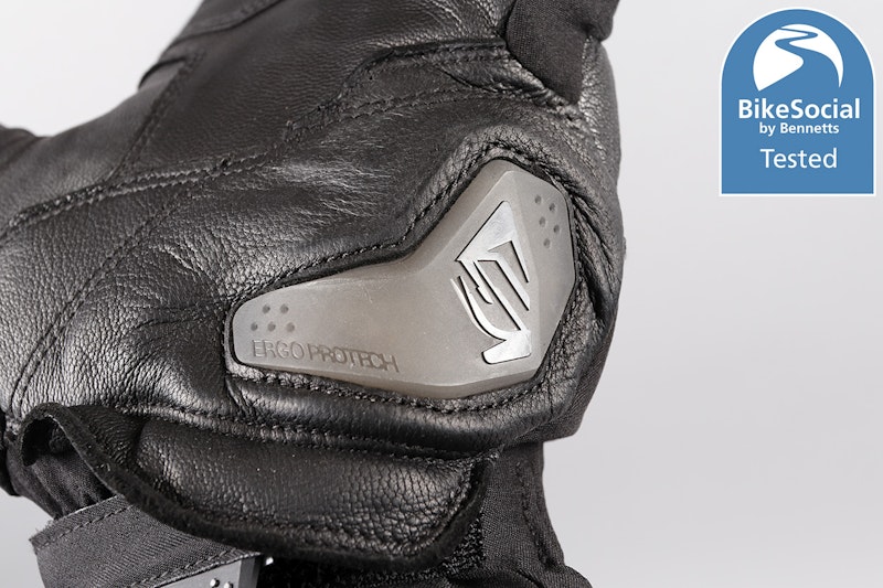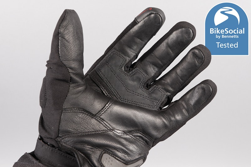 The upper palm is reinforced, and a palm slider covers the hypothenar. This panel is often called a scaphoid protector, and while this one is softer and grippier than some others, it still slides a lot more freely on tarmac than the leather. This reduction in friction can reduce the chances of your hand grabbing in a crash, which can cause the wrist to extend over the hand and break the scaphoid bone.
