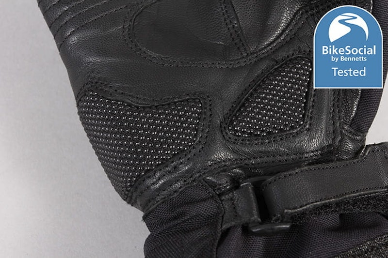 The Wolf Fortitude gloves are CE rated to EN 13594:2015 Level 1 KP (KP indicates knuckle protection). This is achieved through a combination of heavyweight 750 denier nylon outers combined with double stitched, double layer leather across the palm and side of the hand and little finger. Impact protection is provided by a carbon fibre knuckle protector and silicon sliders on the heel of the hand and at the vulnerable scaphoid bone at the base of the thumb.