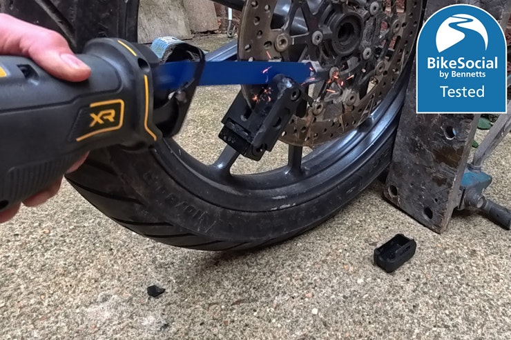 Any disc-lock’s limitation is the fact that a thief could cut the brake disc itself. It’s important not to see this as a reason not to use one though as, contrary to popular belief, not all thieves are carrying angle grinders, and of those that are, not all are willing to cut the disc. It’s been known for a cut disc to jam against the caliper, so this attack method can restrict the ability to push the motorcycle away.