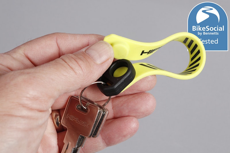 The MD1000 has a graphene composite Ferrosafe construction similar to the excellent best-in-class Hiplok DX1000 D-lock and comes with a storage pouch (it’s not a carry pouch) and two magnetic reminder tabs, one of which is stored on the lock itself and protects the keyway. This can be wrapped around your bike’s handlebars or even attached to the ignition barrel (if it has one) to ensure you don’t forget the lock’s attached. A keyring attachment is also included for the strap. Three coded keys are supplied, and the MD1000 can be keyed-alike with the DX1000 if bought at the same time.