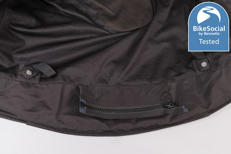 A short connecting zip at the rear allows the jacket to be attached to compatible jeans to help prevent it pulling up in a slide (and to keep drafts out), so it’s a shame that the pair of loops that are designed to clip around your belt are so ineffective. The way they’re designed seems to make it particularly easy for them to pop open even when bending over, so they’re unlikely to be of much benefit in a crash.
