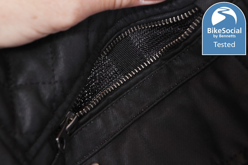 The metal zips used throughout the Oxford Hardy 2.0 are in keeping with the style of the jacket, and it’s great to see a flap over the front to protect your bike’s paintwork.