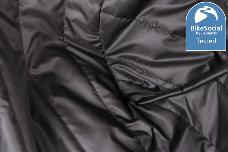 I’ve never really understood the point of short-cuff waterproof gloves, and longer ones might be an issue with this jacket as they’ll struggle to get over the sleeves or under them. Really though, despite the fixed waterproof drop-liner installed inside, the Oxford Hardy 2.0 isn’t a good jacket for wet weather. Water beads up on it well, and the drop liner helps but the vents go straight to the body so without any form of waterproof seal on the zips, these are the first entry point for rain. This isn’t an all-weather jacket for anything beyond a quick shower.